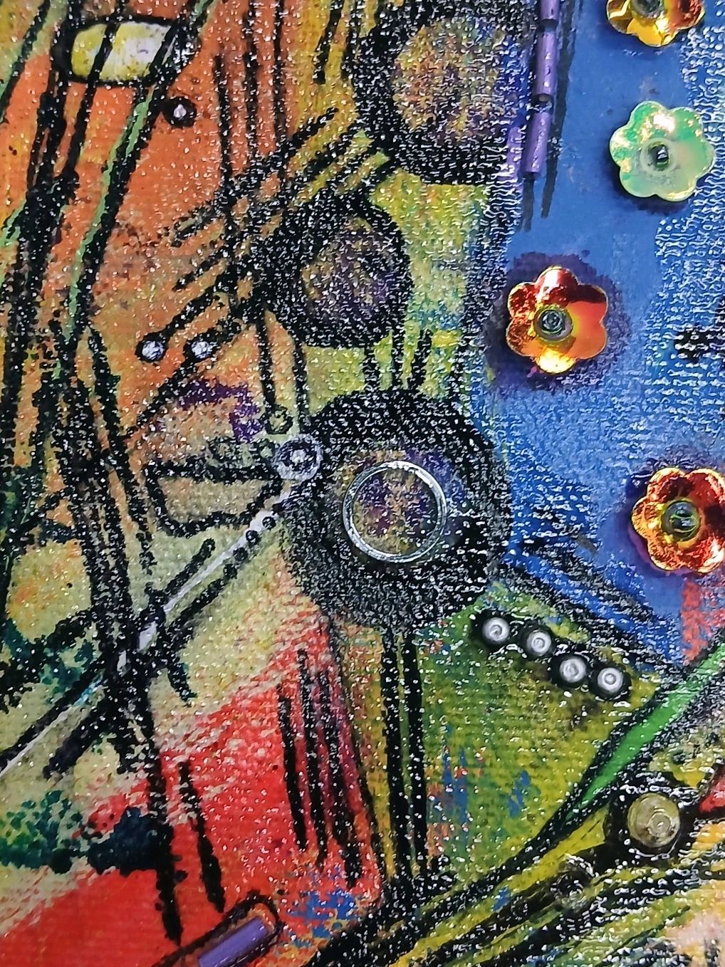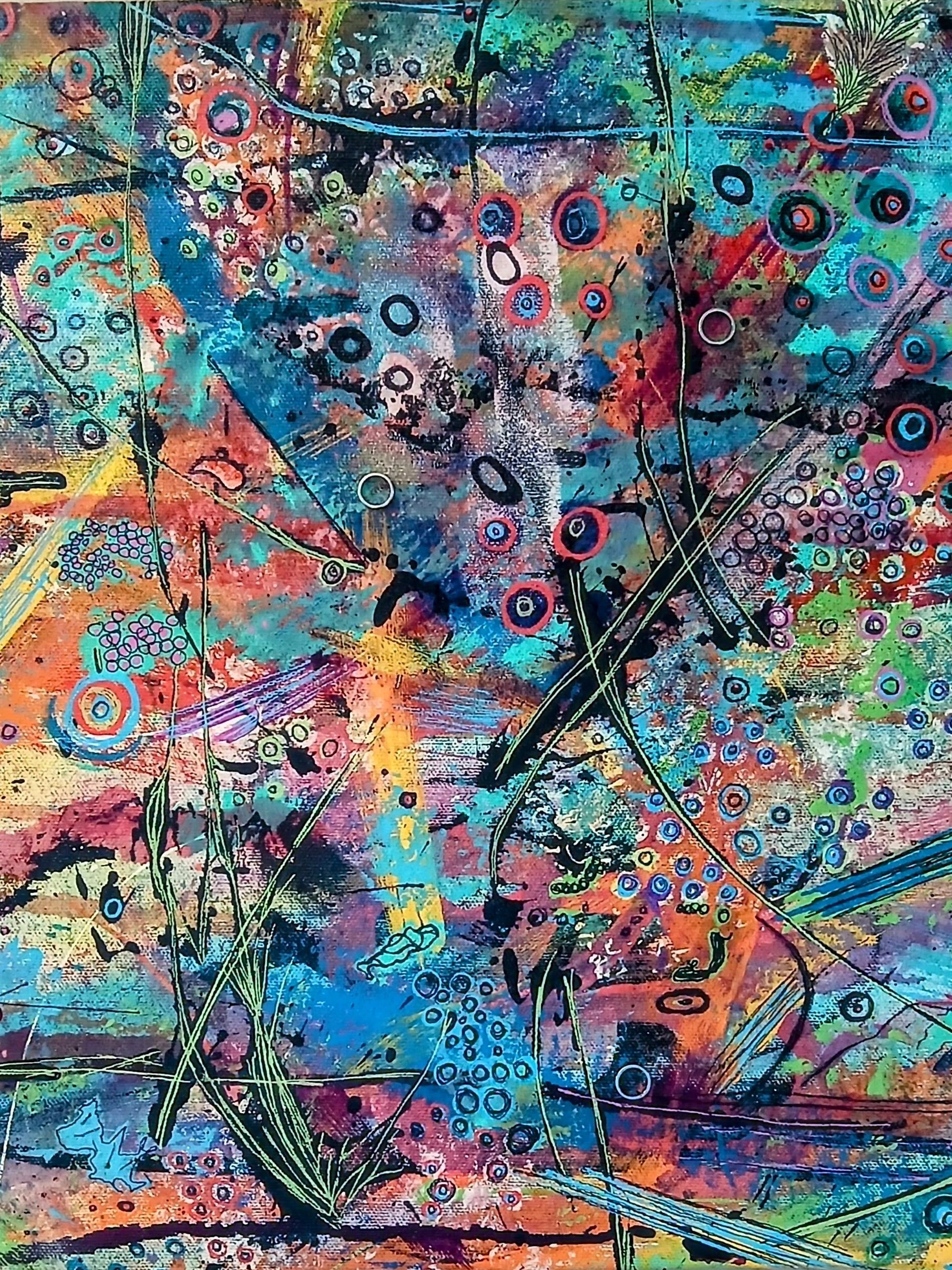Medium: Mixed Media (acrylic, ink, pastel, upcycled metal)