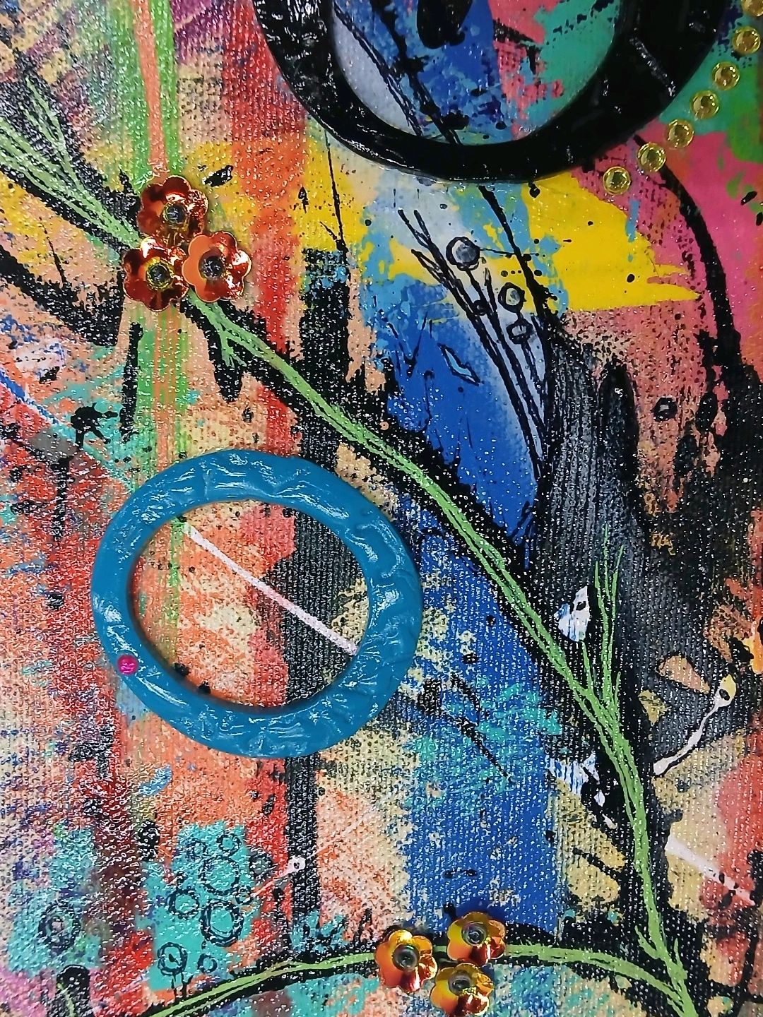 Mixed Media (acrylic, ink, upcycled metal)